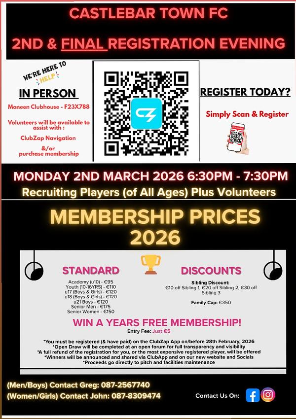 Details of 2nd Registration attached. Volunteers will be there on the night to help get you set up on the app & help get membership sorted, if help needed. Bring debit cards (no cash accepted).