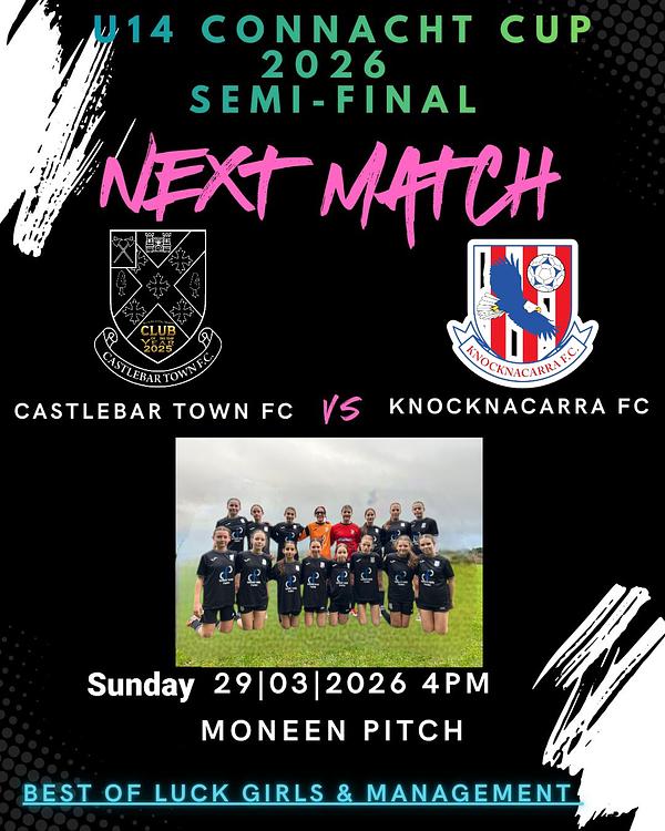 A huge day & contest on SUNDAY in Moneen for our amazing U14 girls. Please come out & shout on the girls- your support would be appreciated 🏴🏳⚽️